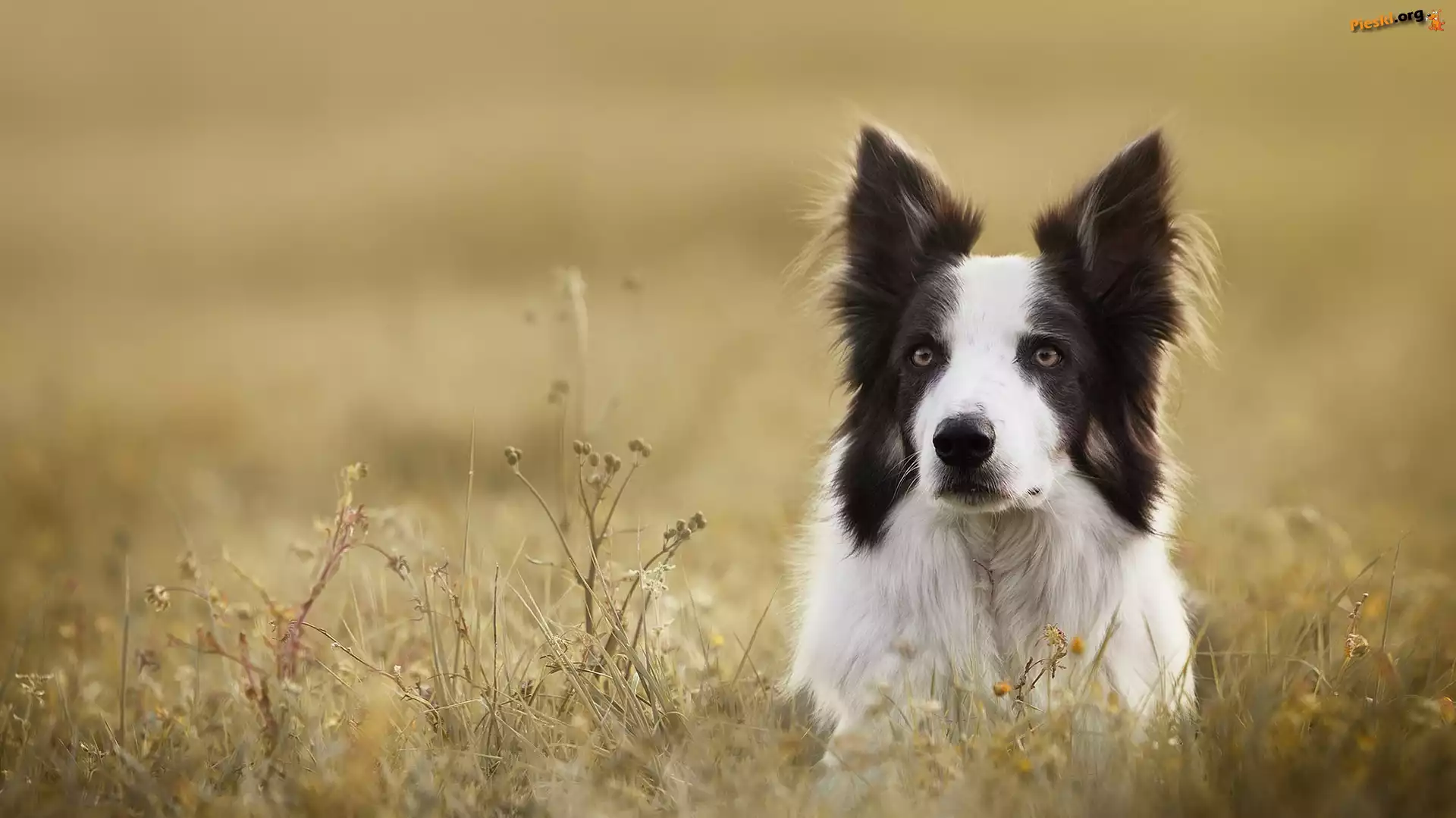 Łąka, Border collie, Pies, Mordka, Rośliny, Pieski