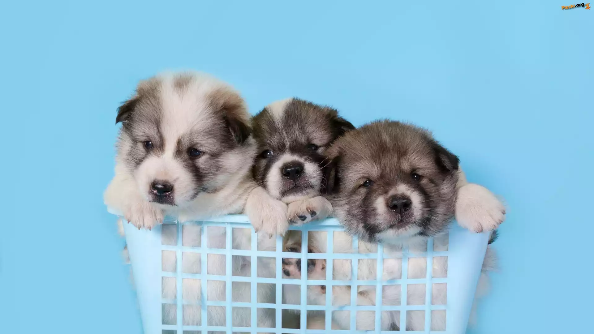 Akita, Psy, Trzy, Szczeniaki, Koszyk, Pieski