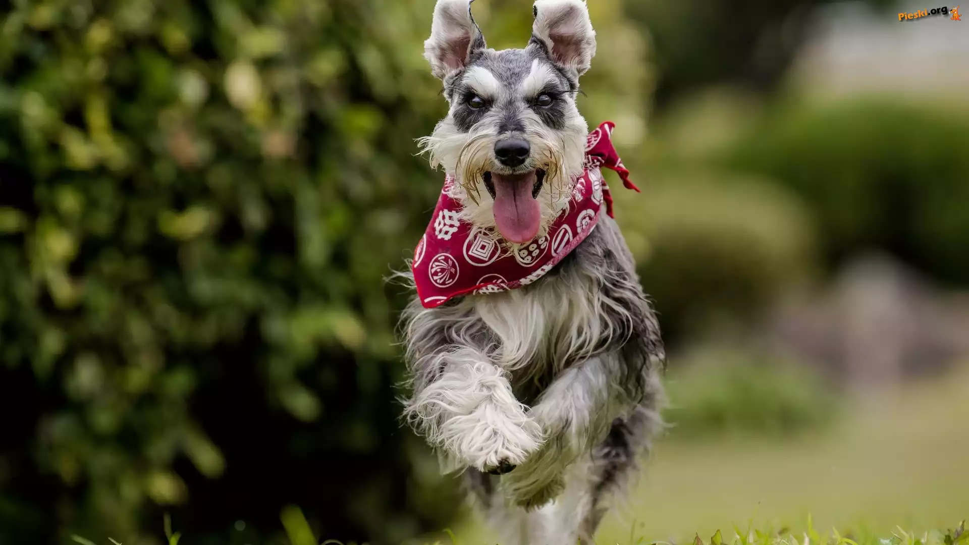 Apaszka, Pies, Sznaucer, Bieg, Pieski