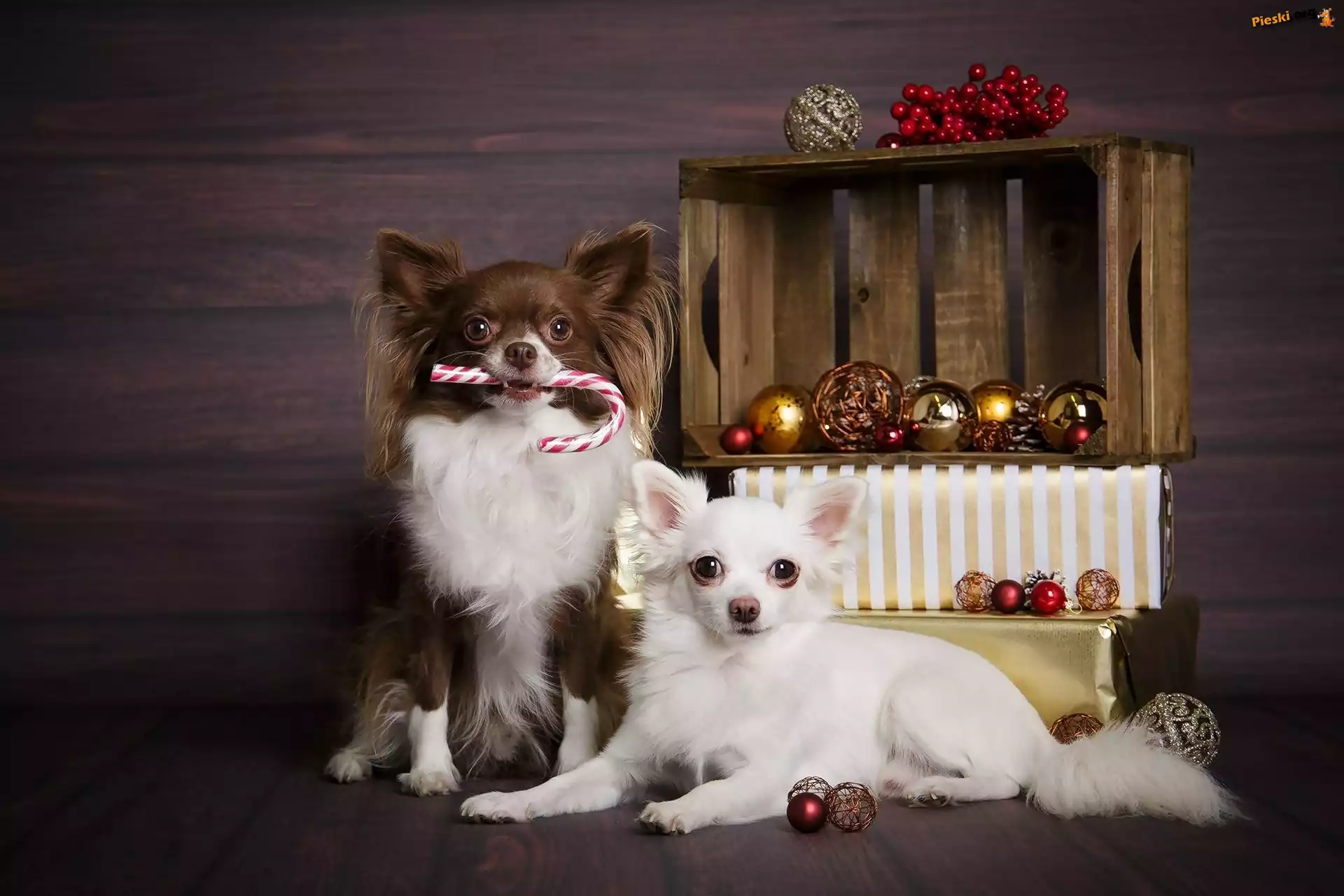 Bombki, Psy, Dwa, Chihuahua długowłosa, Świąteczne