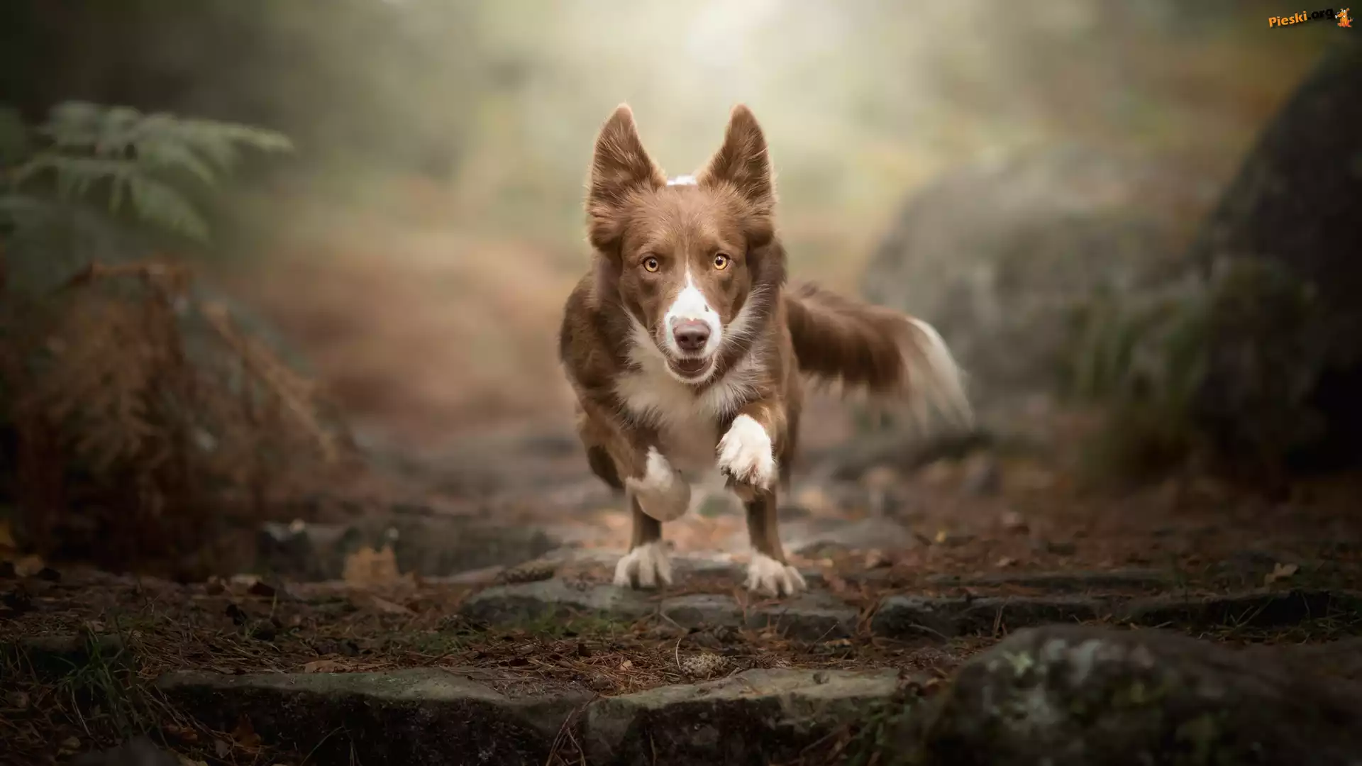 Border collie, Pies, Czekoladowo-biały, Bieg, Pieski