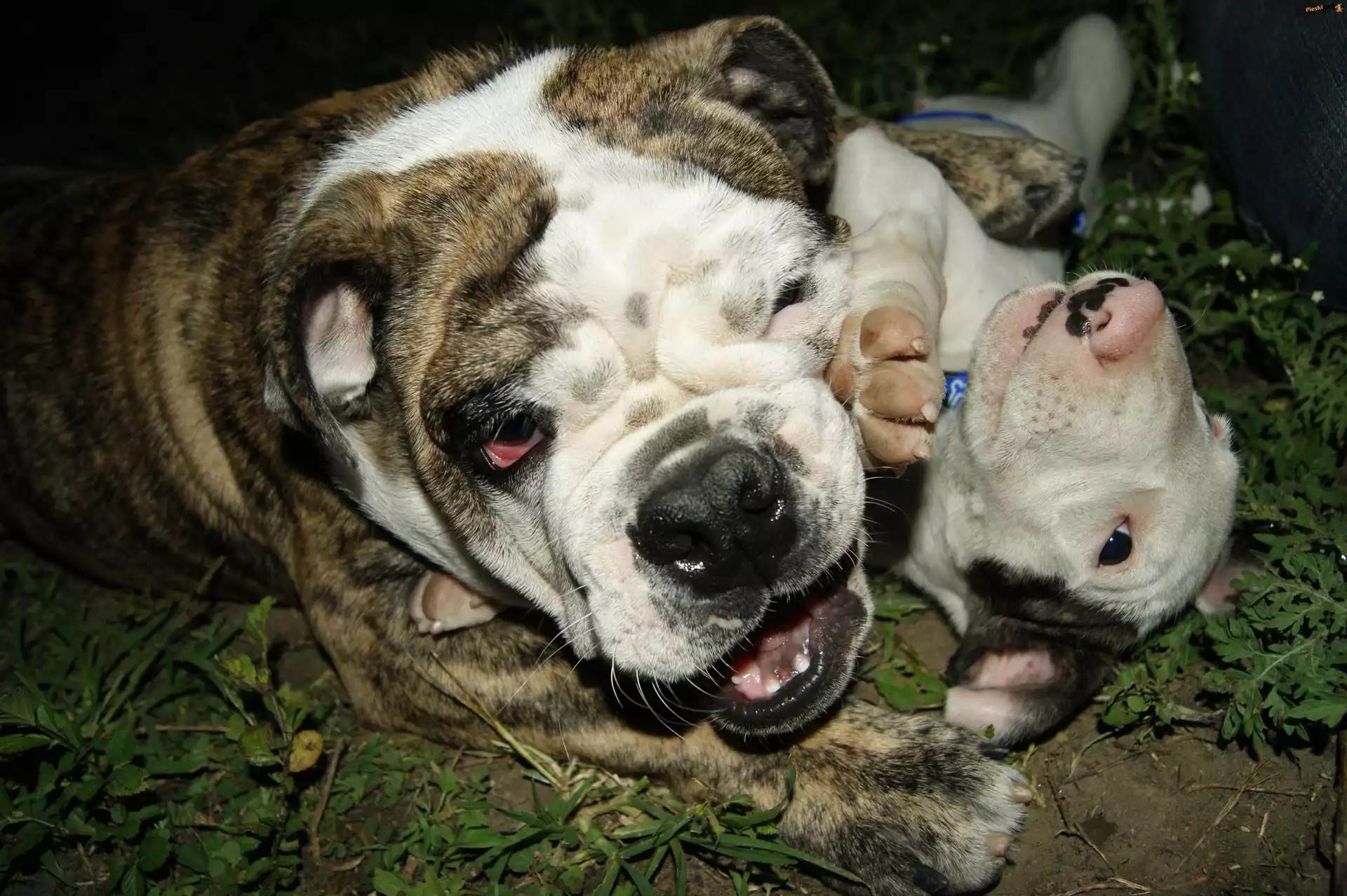 Buldog Angielski, Trawa, Zabawa, Pieski
