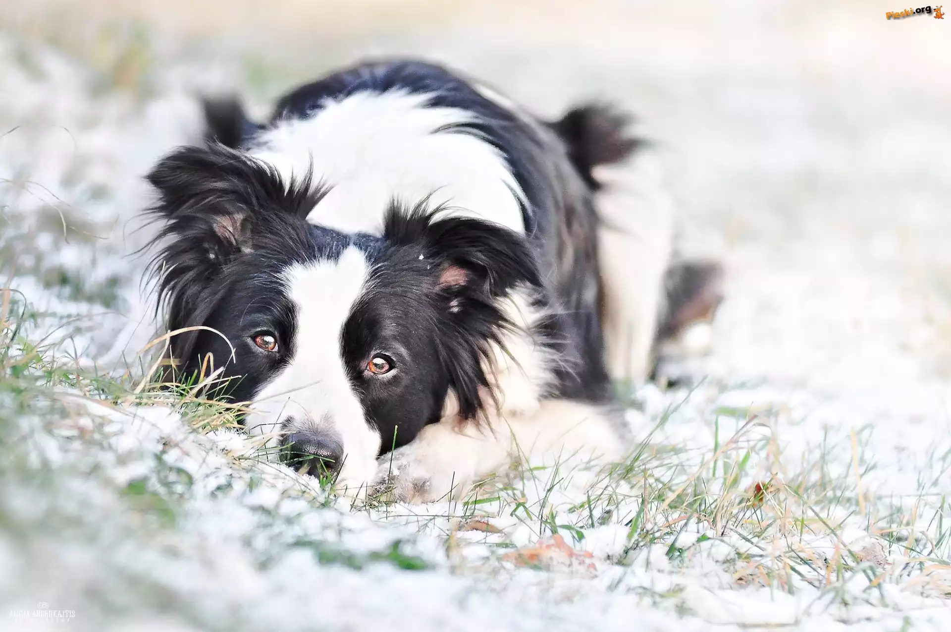 Śnieg, Pies, Border Collie, Trawa, Pieski