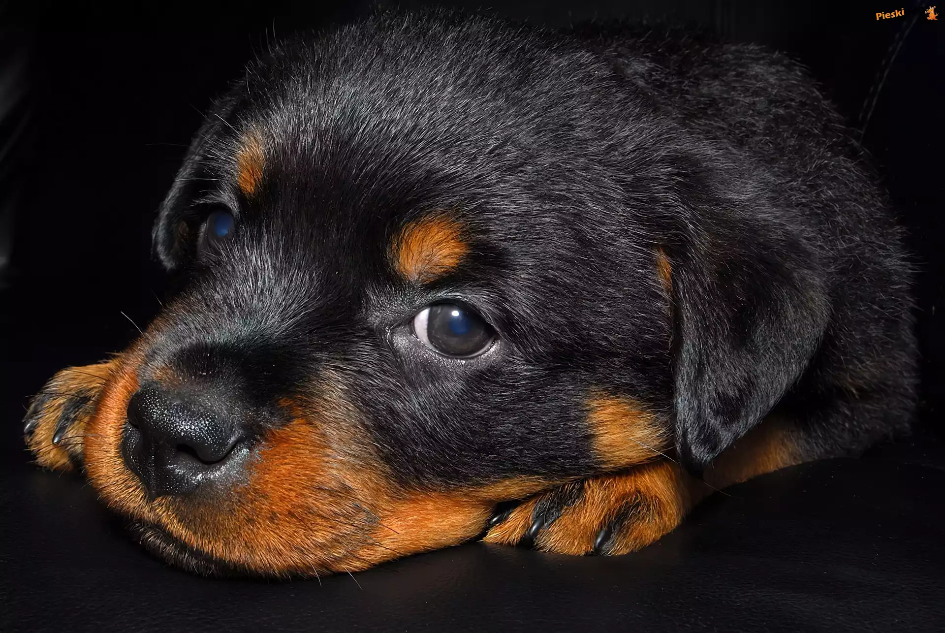 Szczeniaczek, Mały, Czarny, Rottweiler, Pieski