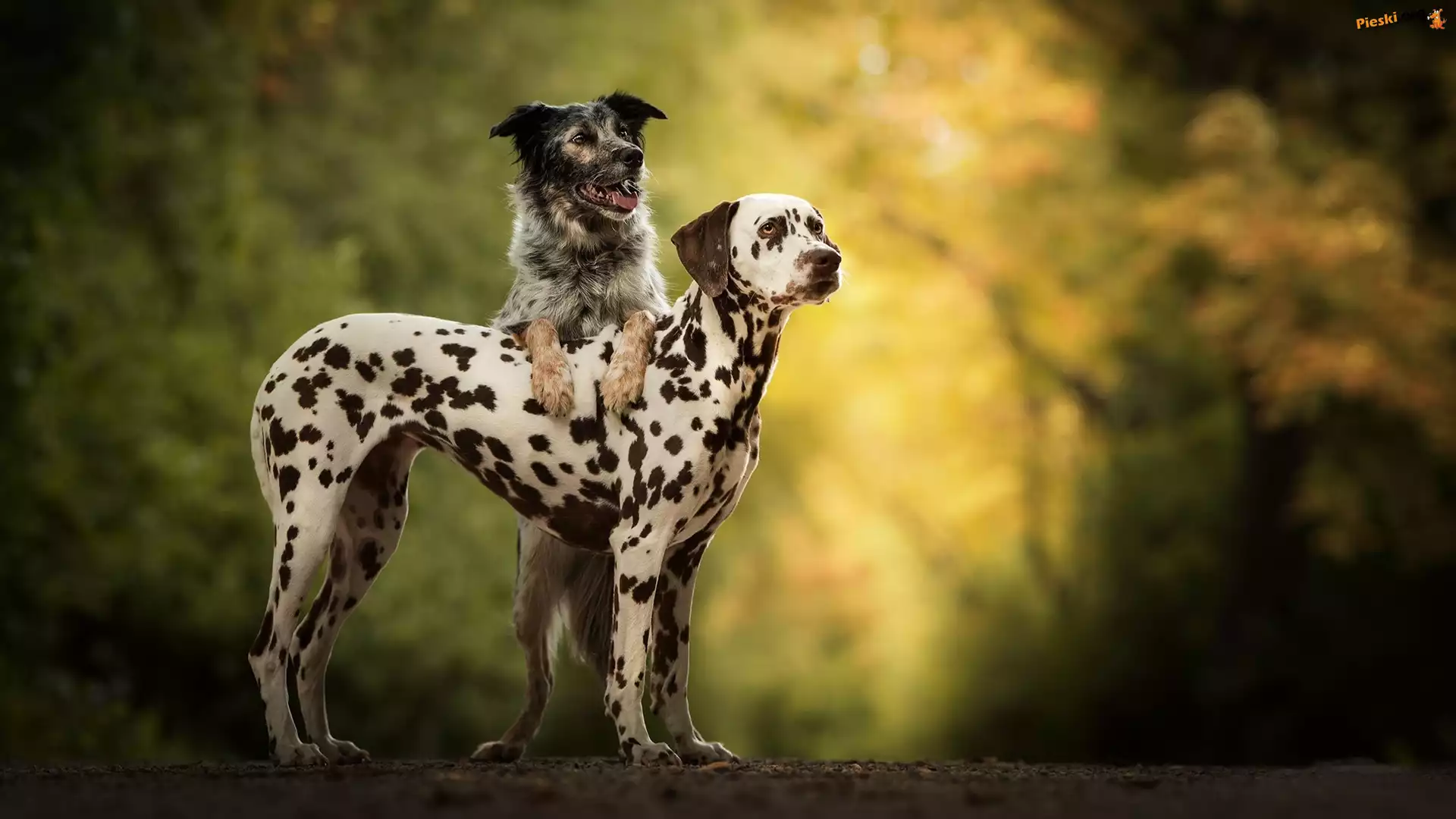 Dalmatyńczyk, Dwa, Psy, Kundelek, Pieski