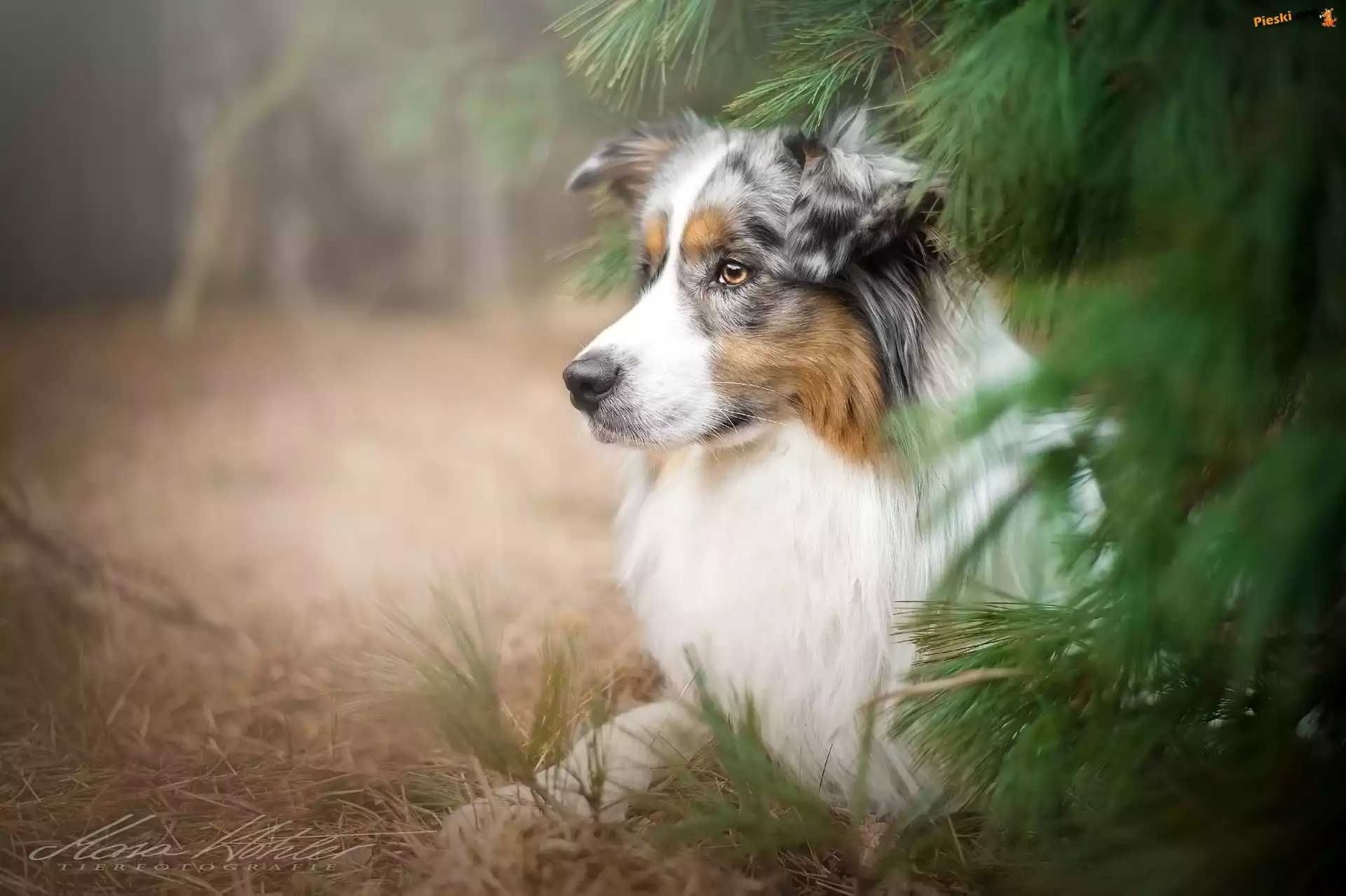 Iglak, Owczarek australijski, Drzewo, Trawa, Pieski