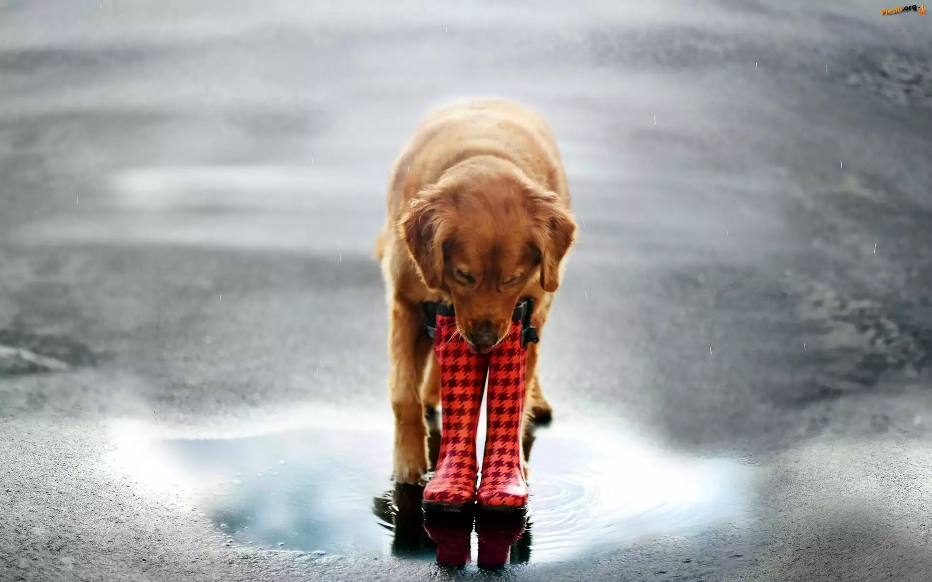 Pies, Kalosze, Deszcz