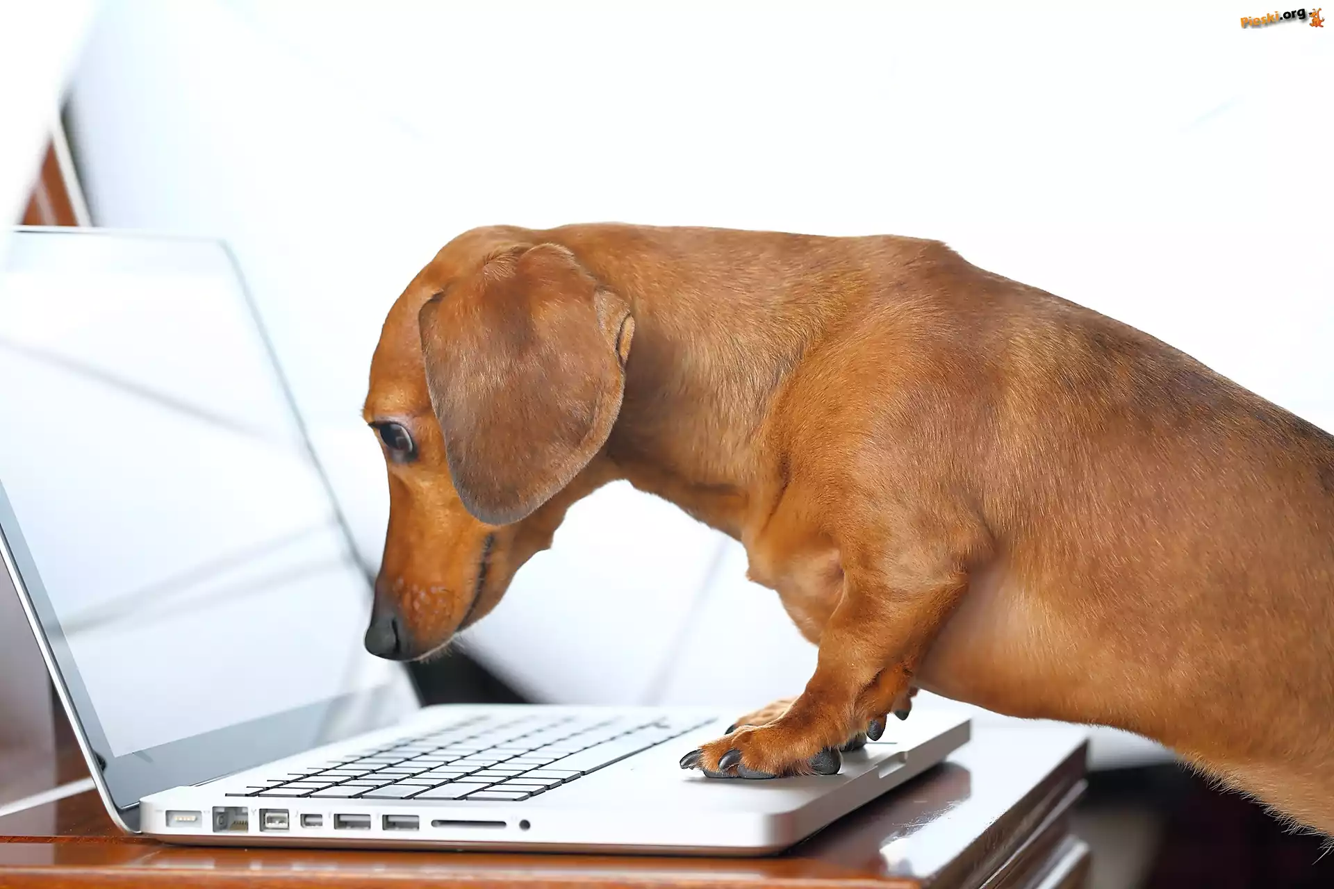 Laptop, Pies, Jamnik, Śmieszne, Pieski
