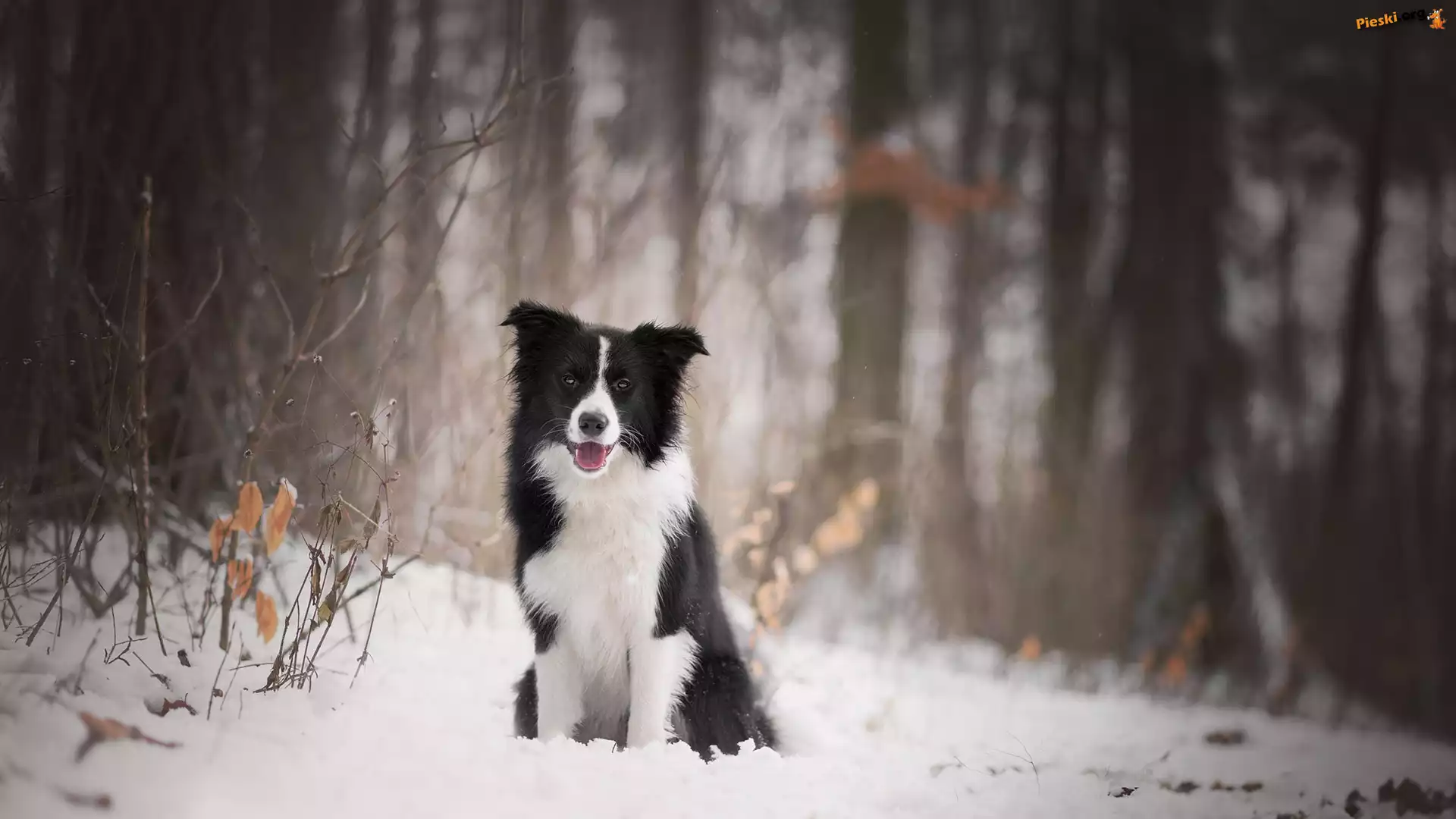 Las, Pies, Border collie, Śnieg