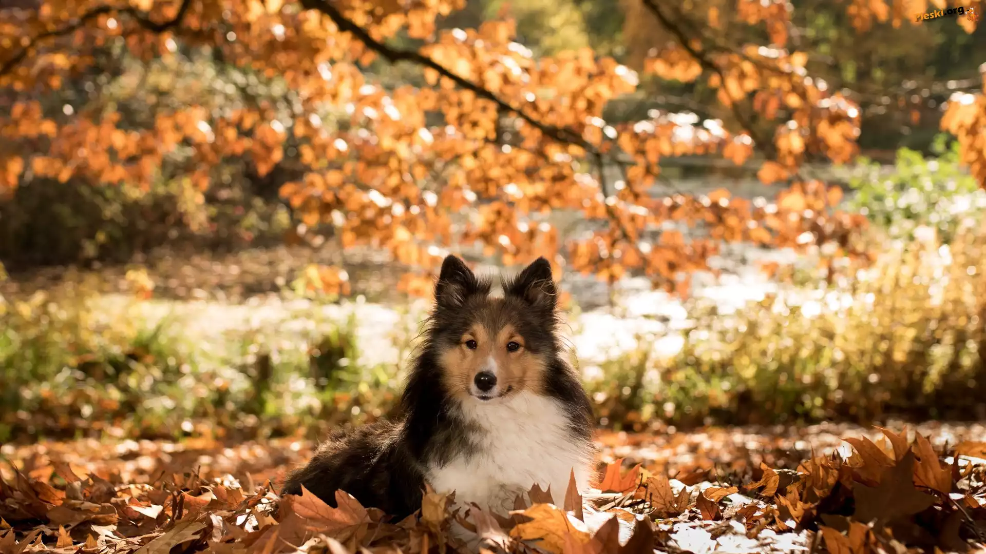 Liście, Pies, Owczarek szetlandzki, Pieski