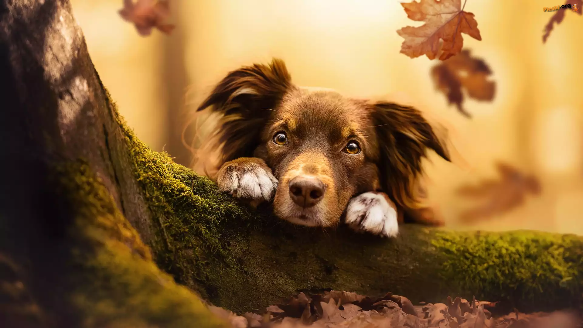 Liście, Konar, Pies, Pieski