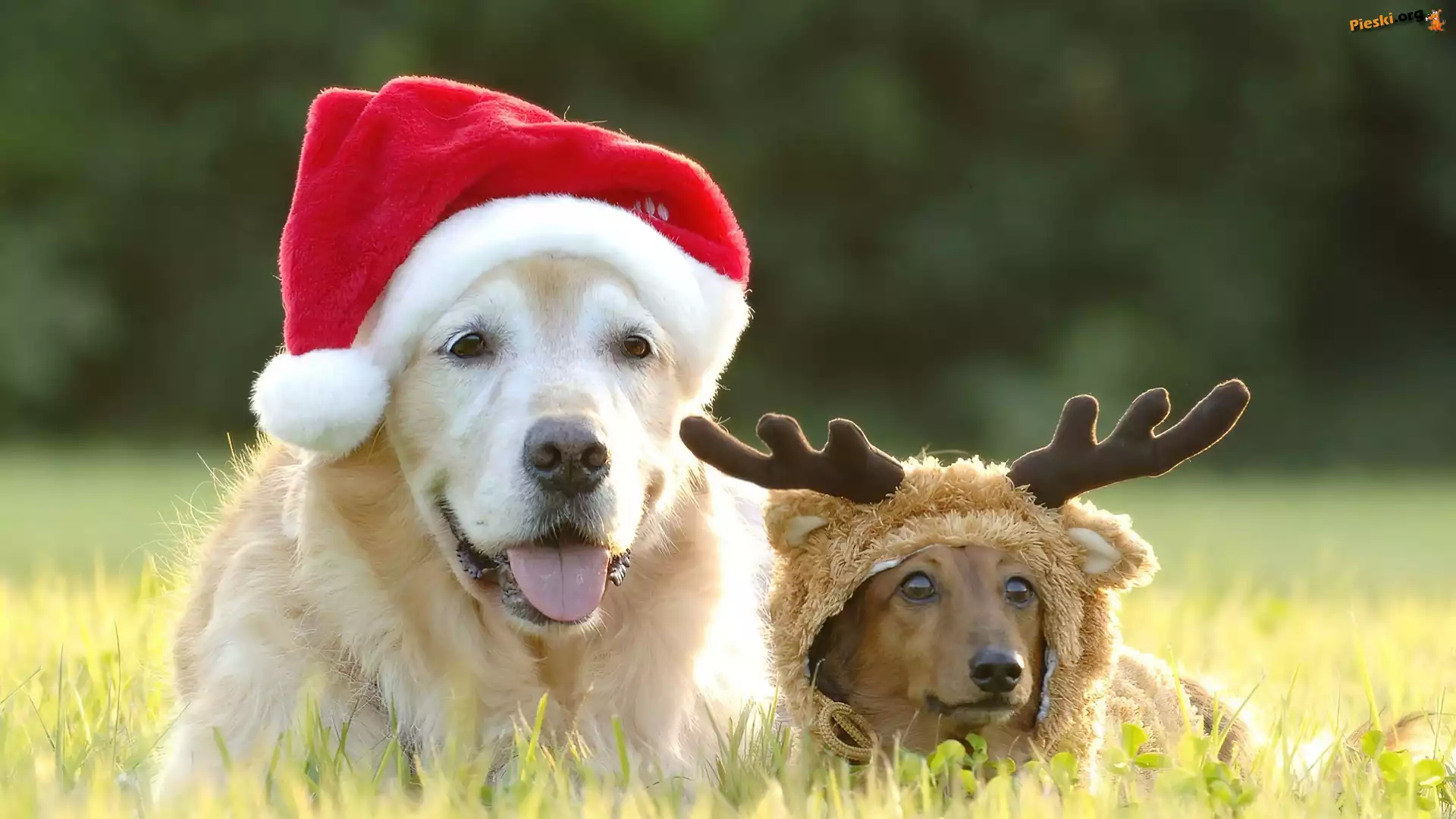 Mikołaja, Psy, Dwa, Czapki, Renifer