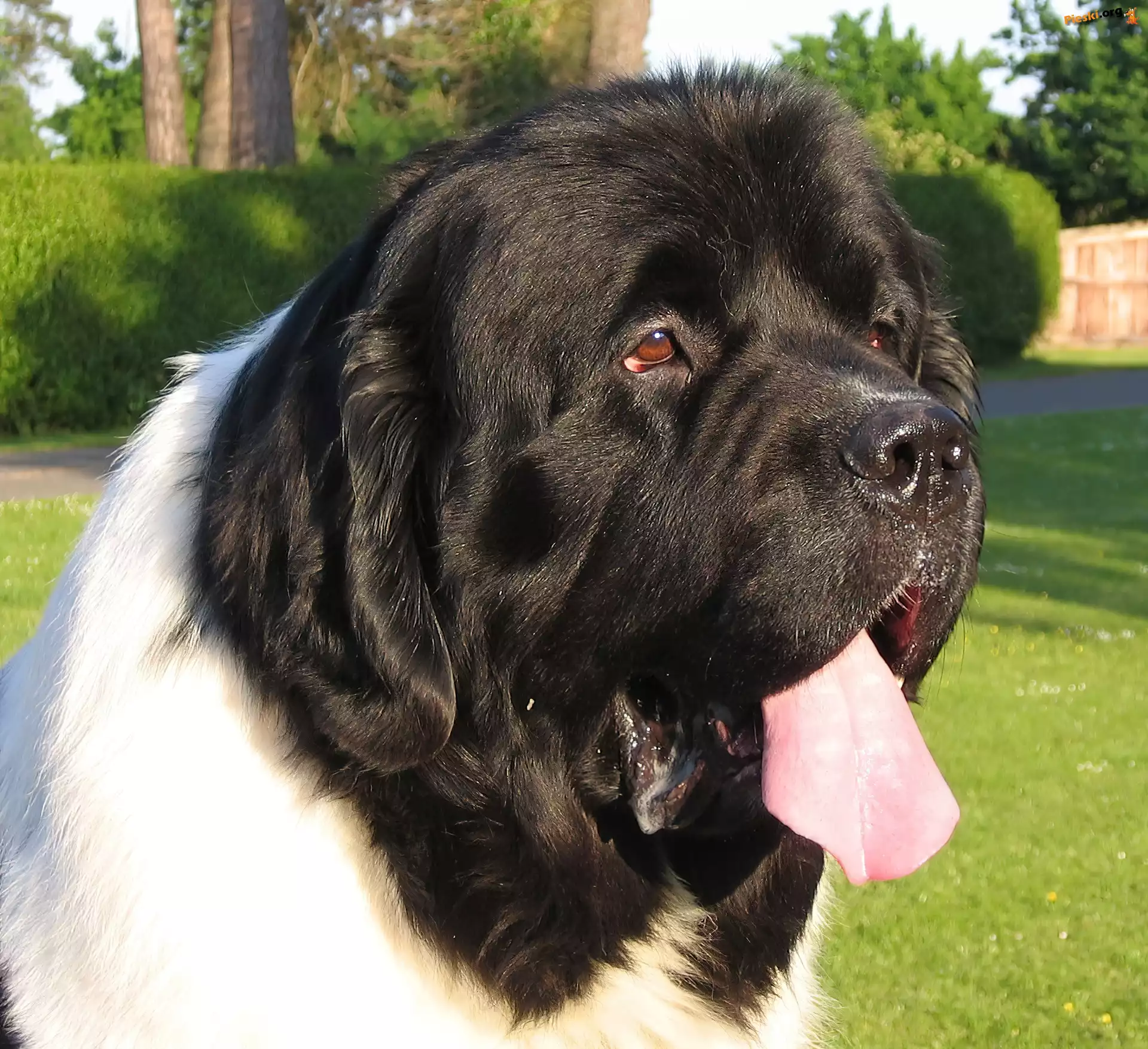 pysk, Landseera trawa, zielona, Landseer morda, Landseera mordka, Landseera Morda, Landseera trzy, Landseery biegnący, Landseer Piesek, Łąka słodkie, szczeniaki, Landseery kratka, chustki, Landseer biało-czarny, Landseer Kot, Pies, Słodkie
