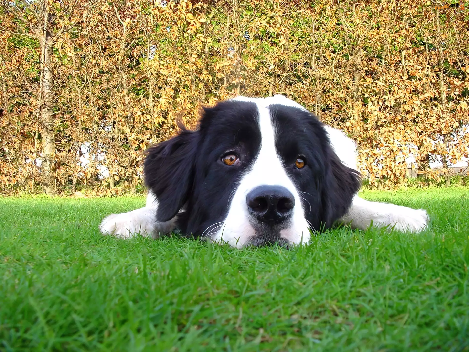 pysk, Landseera trawa, zielona, Landseer morda, Landseera mordka, Landseera Morda, Landseera trzy, Landseery biegnący, Landseer Piesek, Łąka słodkie, szczeniaki, Landseery kratka, chustki, Landseer biało-czarny, Landseer Kot, Pies, Słodkie