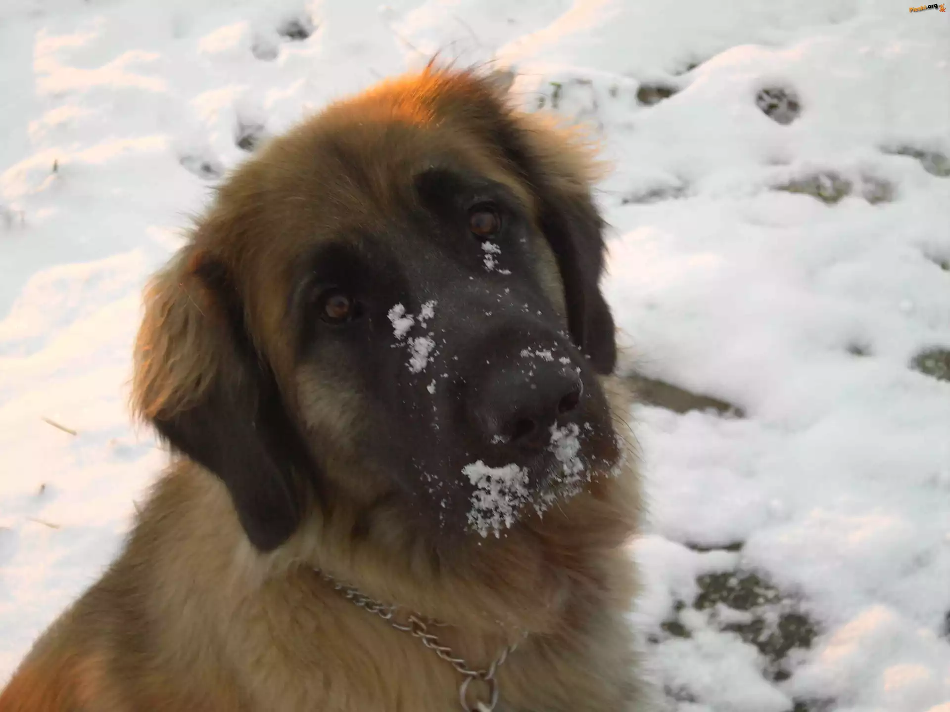 Ośnieżona, mordka, Leonbergera, Pieski