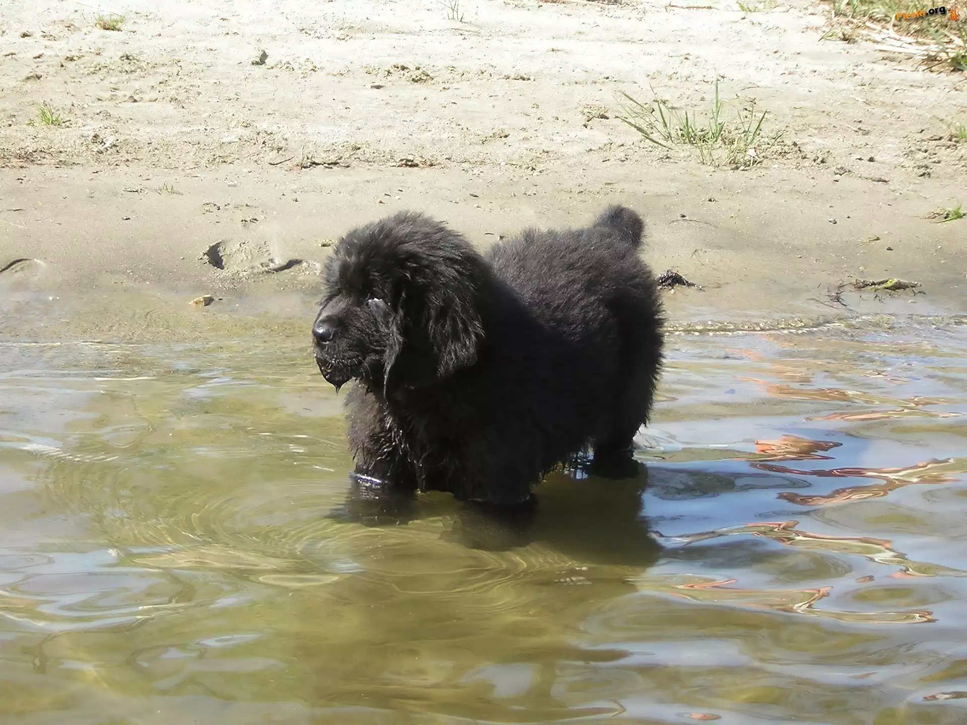 Długa, Pies, Czarna, Sierść brązowy, Nowofundland Nowofundland, woda Nowofundland, Pysk Kwiaty, Pies, Łąka, Nowofundland Dwa, Szczeniaczki, Nowofundland szczeniak nowofundlanda