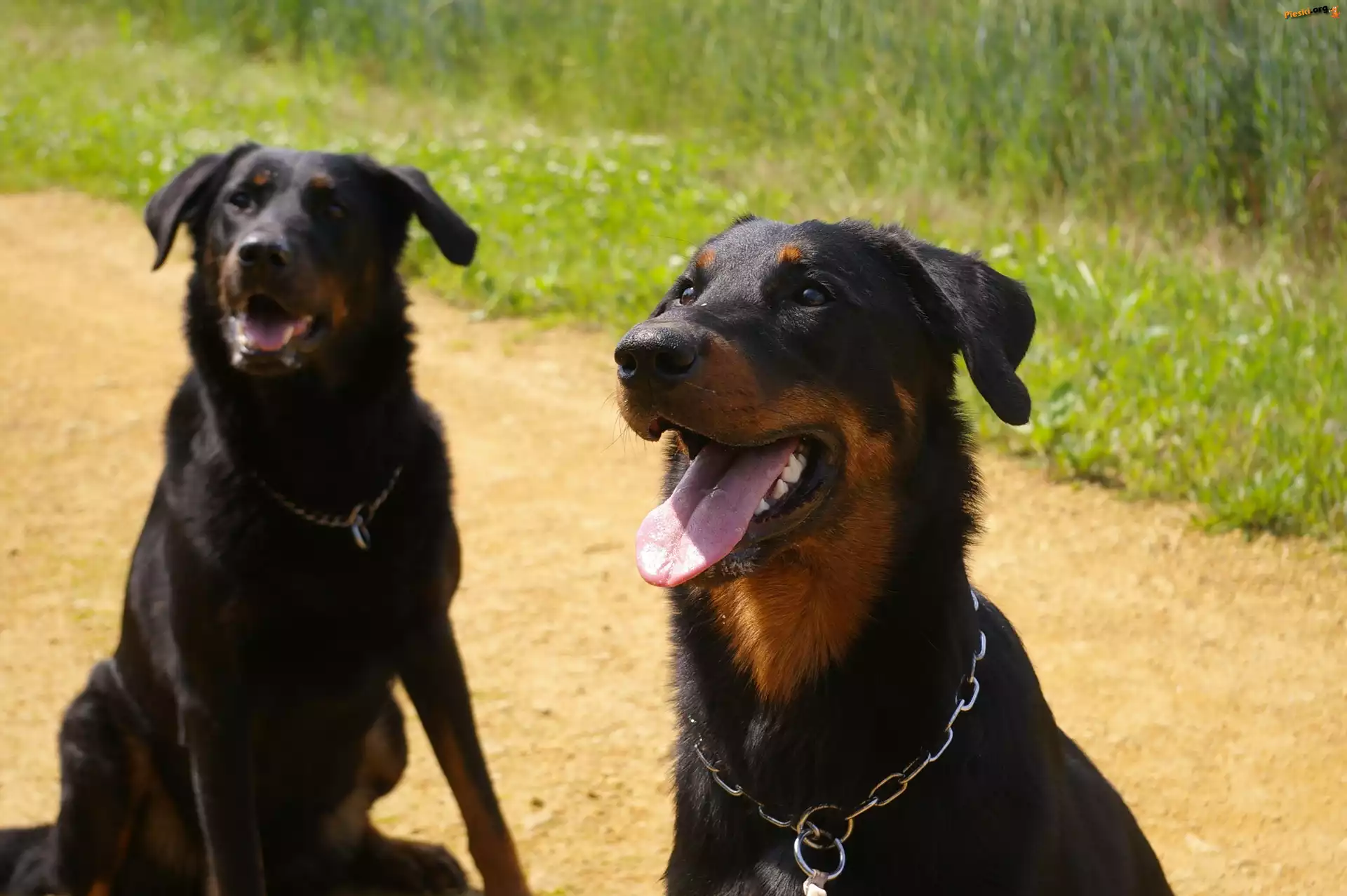 Beauceron, obroża, łańcuch, Pieski