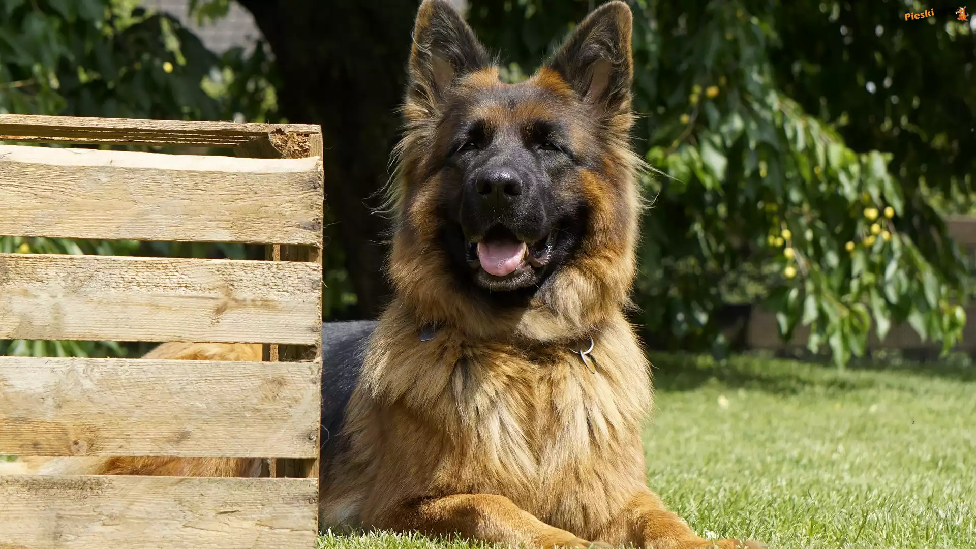 Owczarek niemiecki, Leżący, Pies, Skrzynka