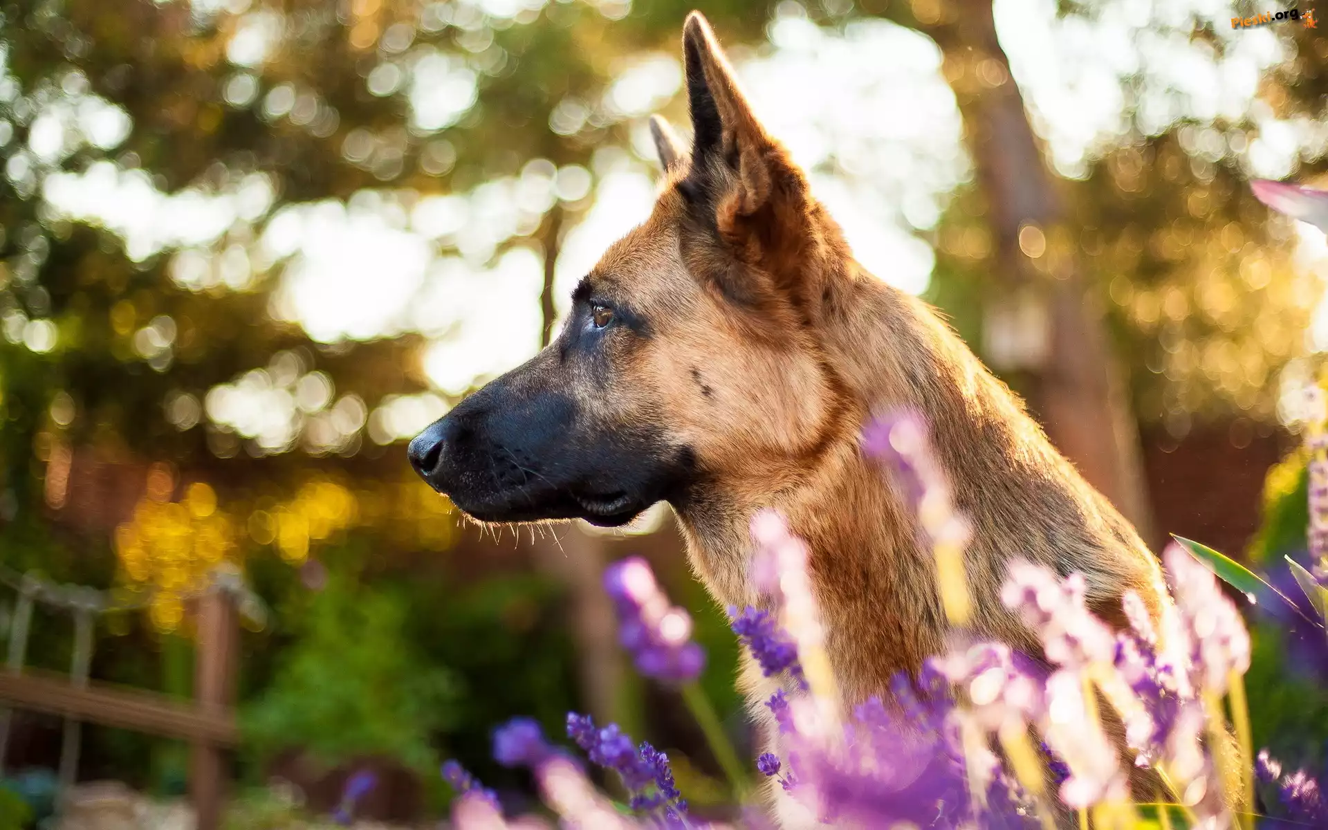 Szczeniak, Duże, Uszy Owczarek belgijski Malinois, Pies, Mordka, Kwiaty Wrzosy, Pies, Rozmyte, Mordka, Owczarek belgijski malinois, Jęzor, Tło