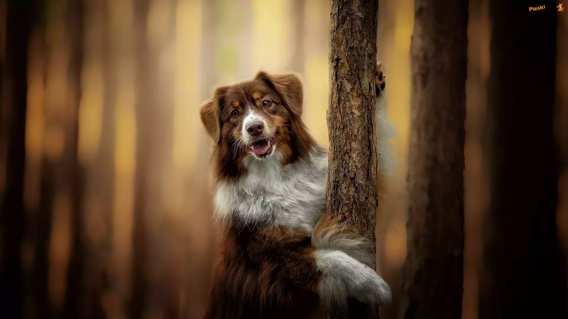 Owczarek australijski, Drzewa, Rozmyte tło, Pieski