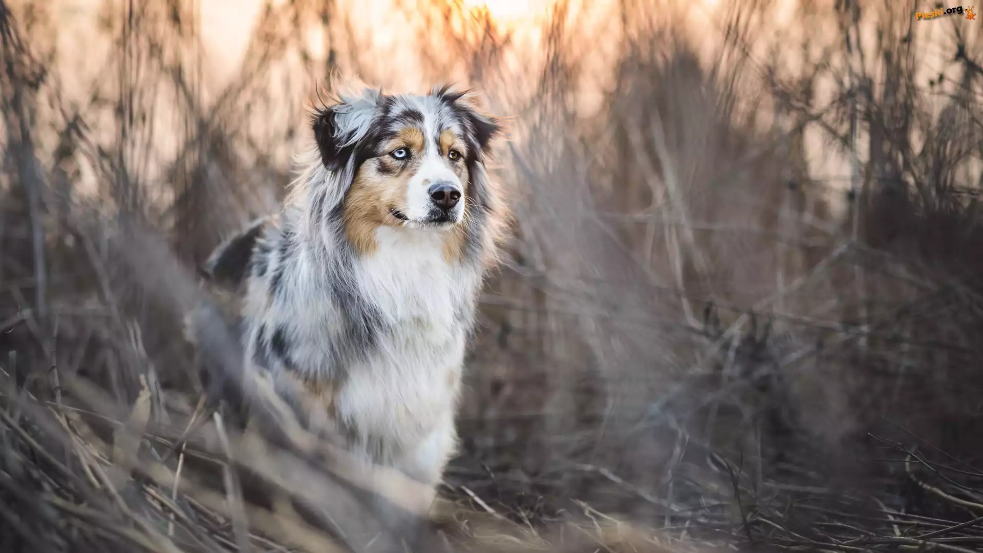 Owczarek australijski, Australian shepherd, Trawa, Pieski