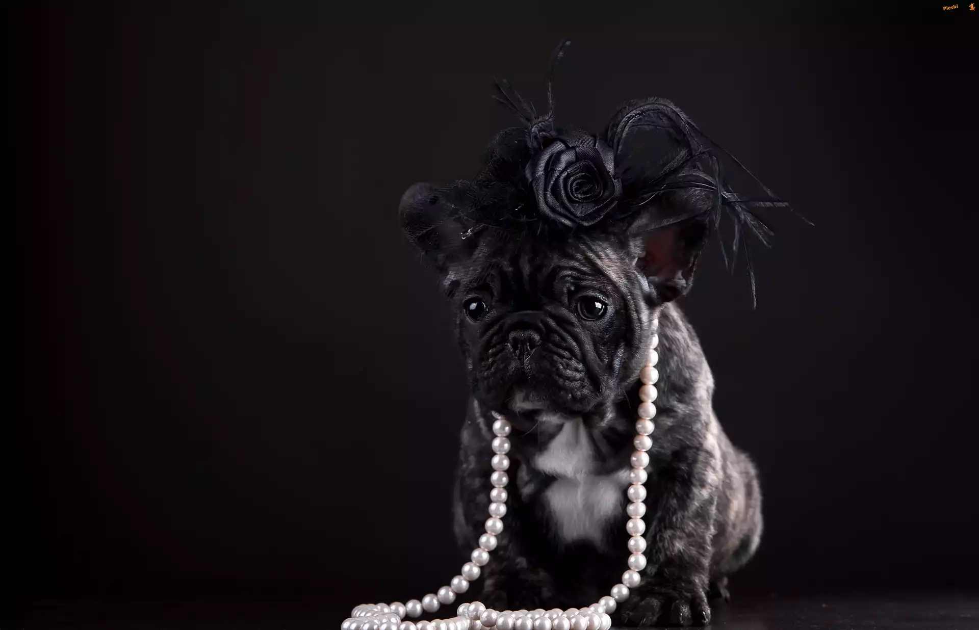 Pies , Sztuczne , Perły, Buldog, Francuski, Kwiaty