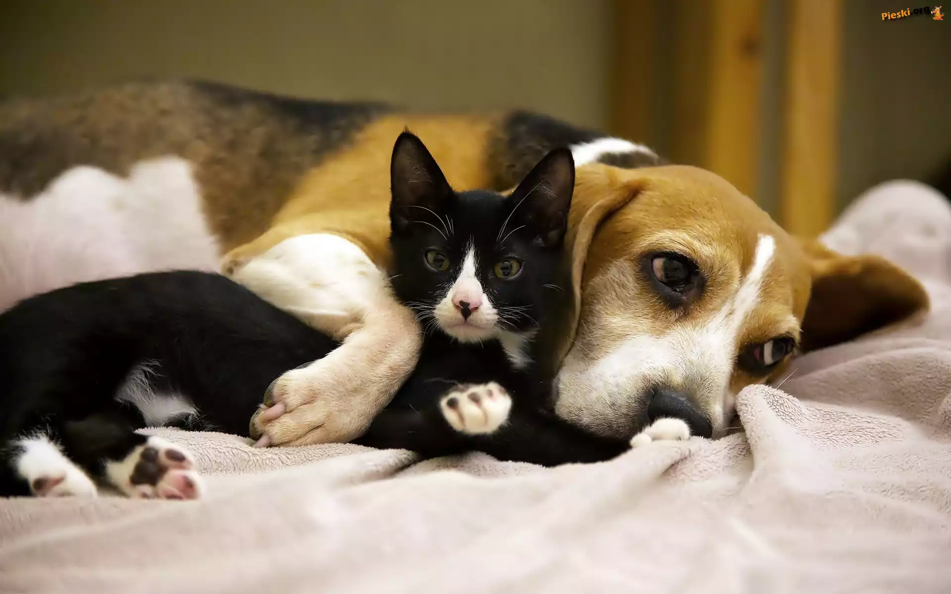Przyjaciele, Kotek, Czarny, Pies, Beagle, Pieski