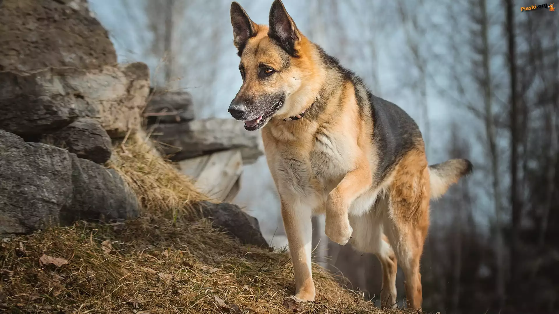 Pies, Owczarek niemiecki, Kamienie, Pieski