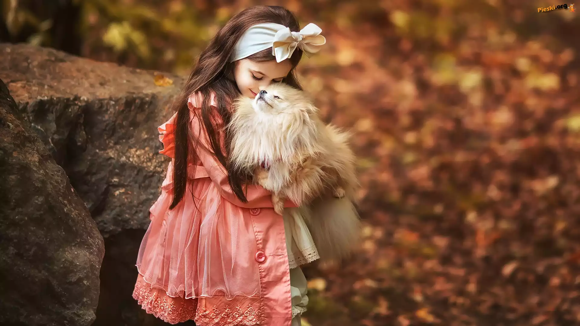 Pies, Dziewczynka, Płaszczyk, Szpic, Pieski