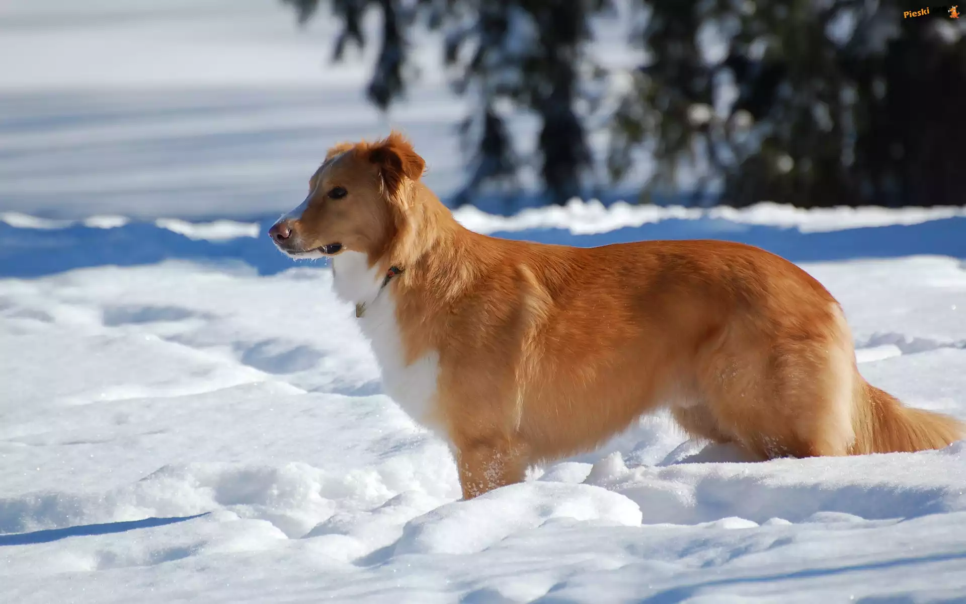 Śnieg, Rudy, Piesek, Zima, Pieski