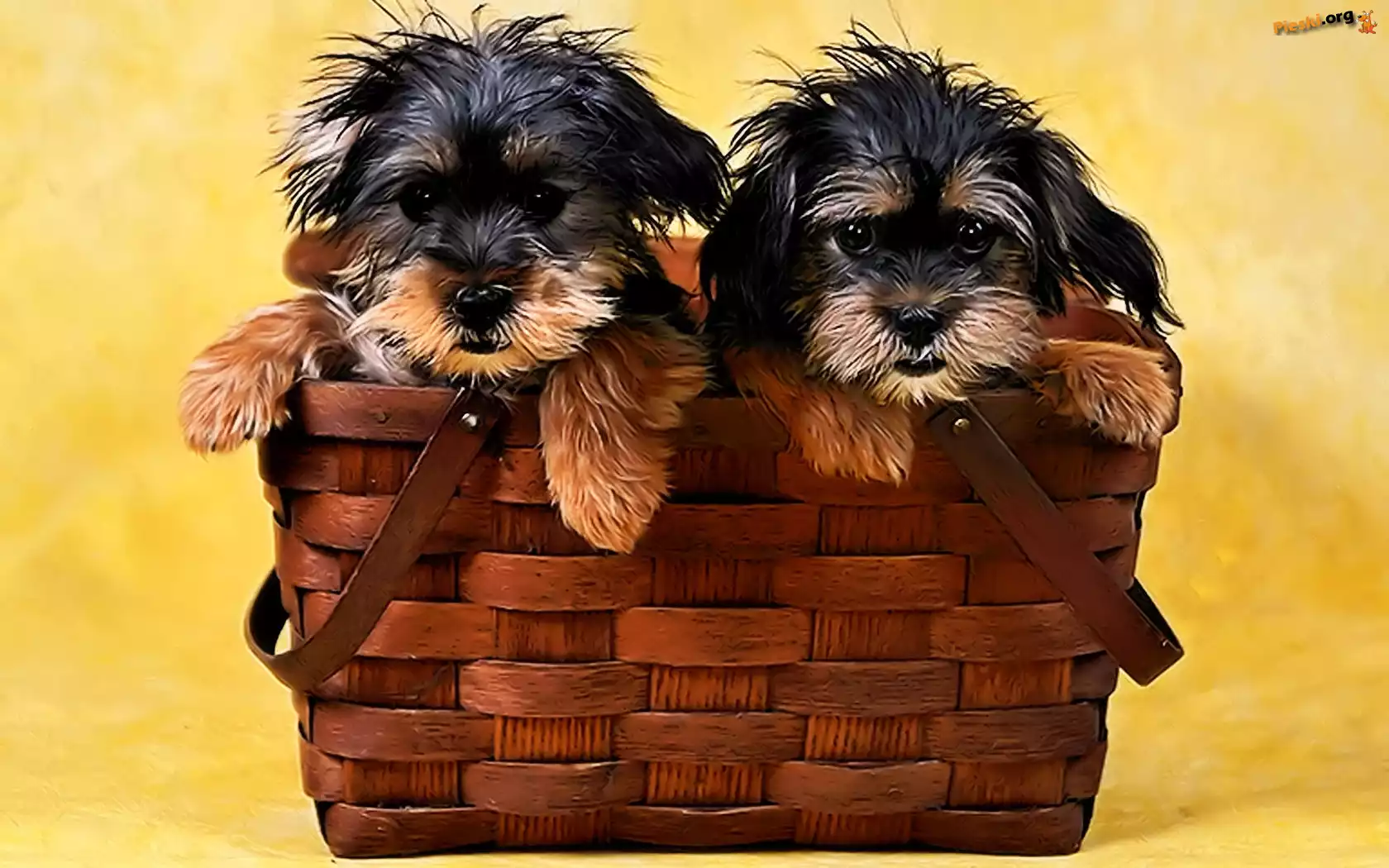 Pieski, Dwa, Słodkie, Koszyk