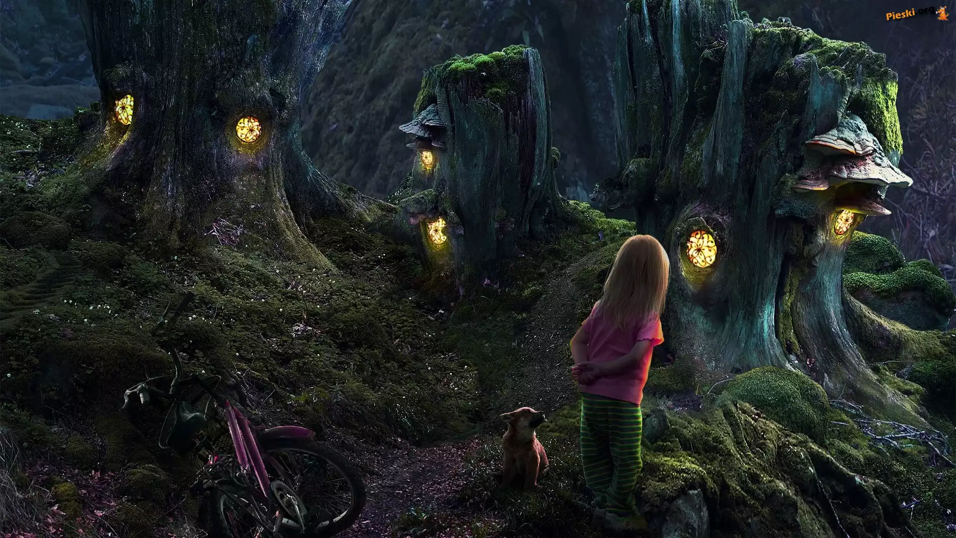 Pnie, Dziewczynka, Góry, Drzew, Światło, Piesek, Pieski
