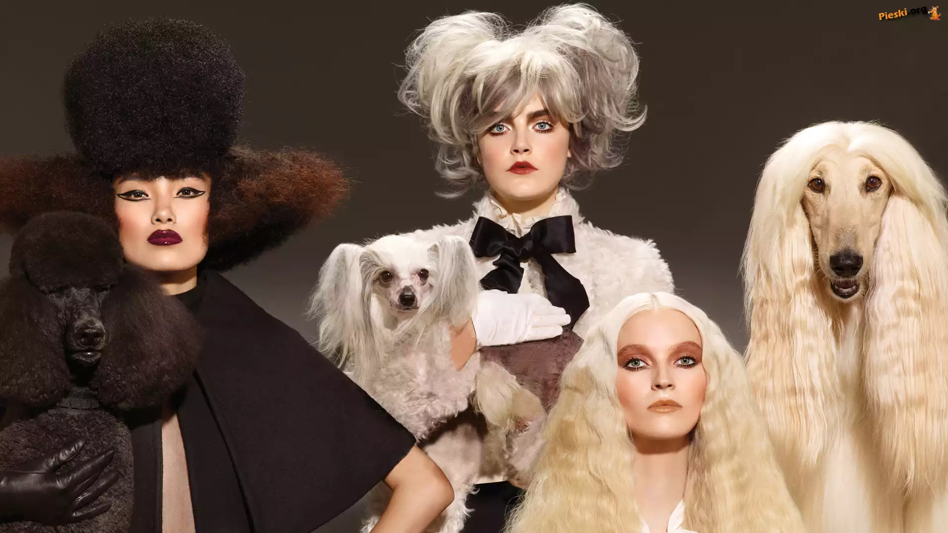 Chart afgański, Kobiety, Psy, Trzy, Grzywacz chiński, Pudel, Pieski