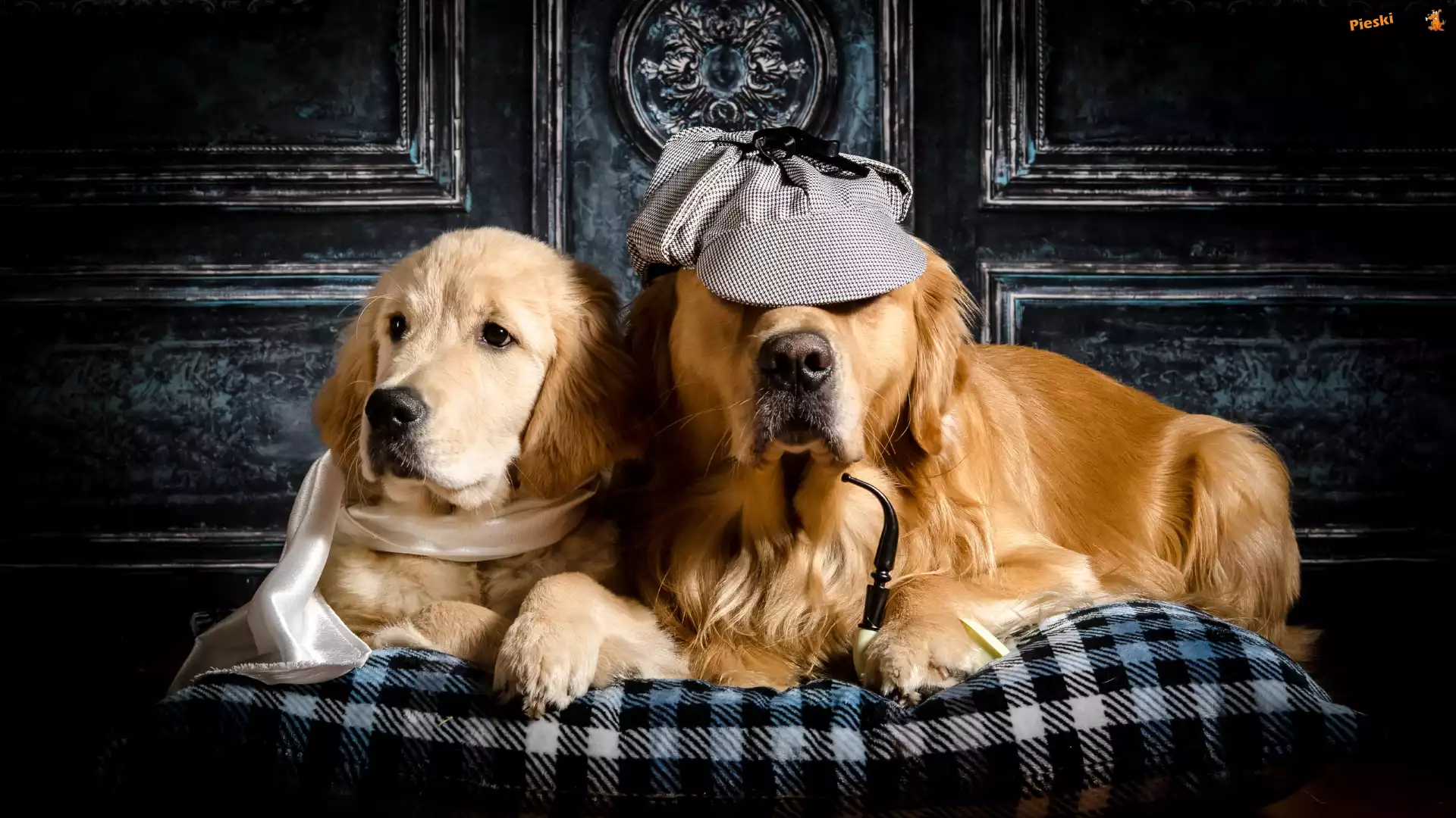Poduszka, Psy, Golden retriever, Dwa, Szal, Czapka