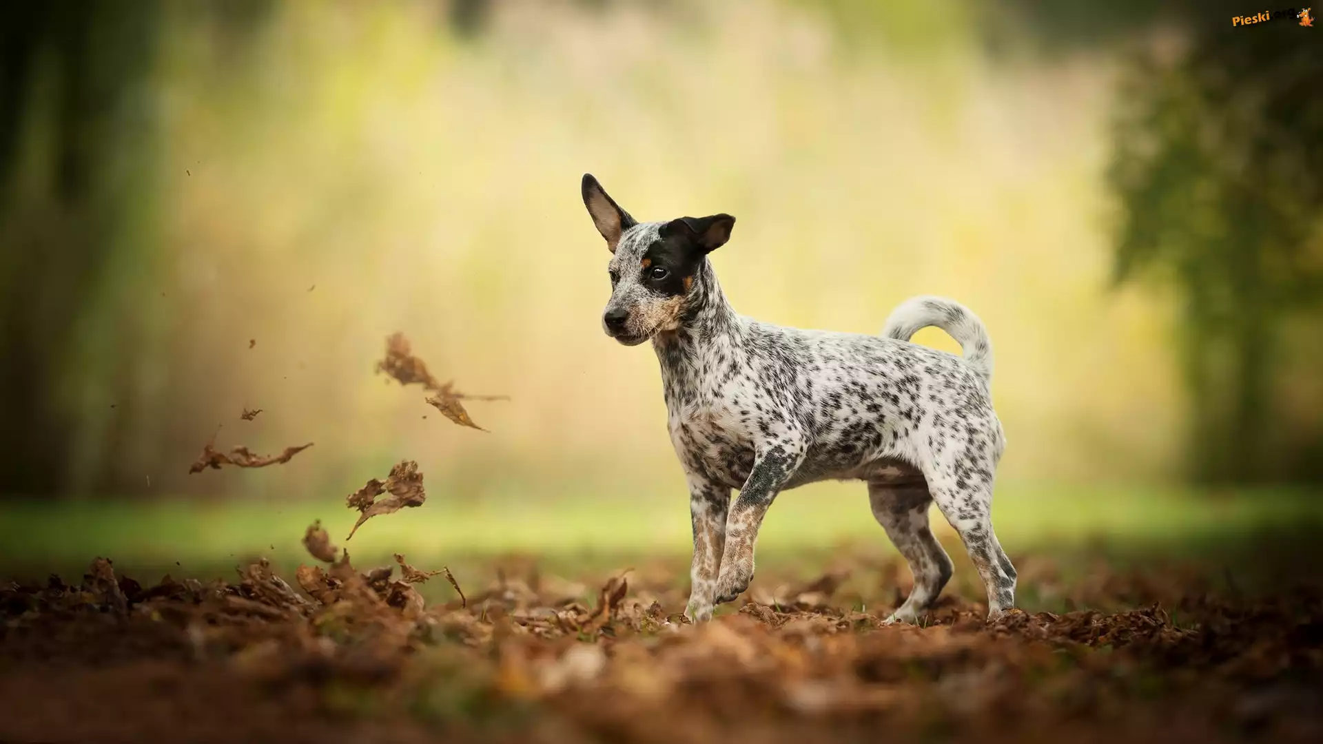 Rozmyte, Polana, Pies, Liście, Tło, Pieski