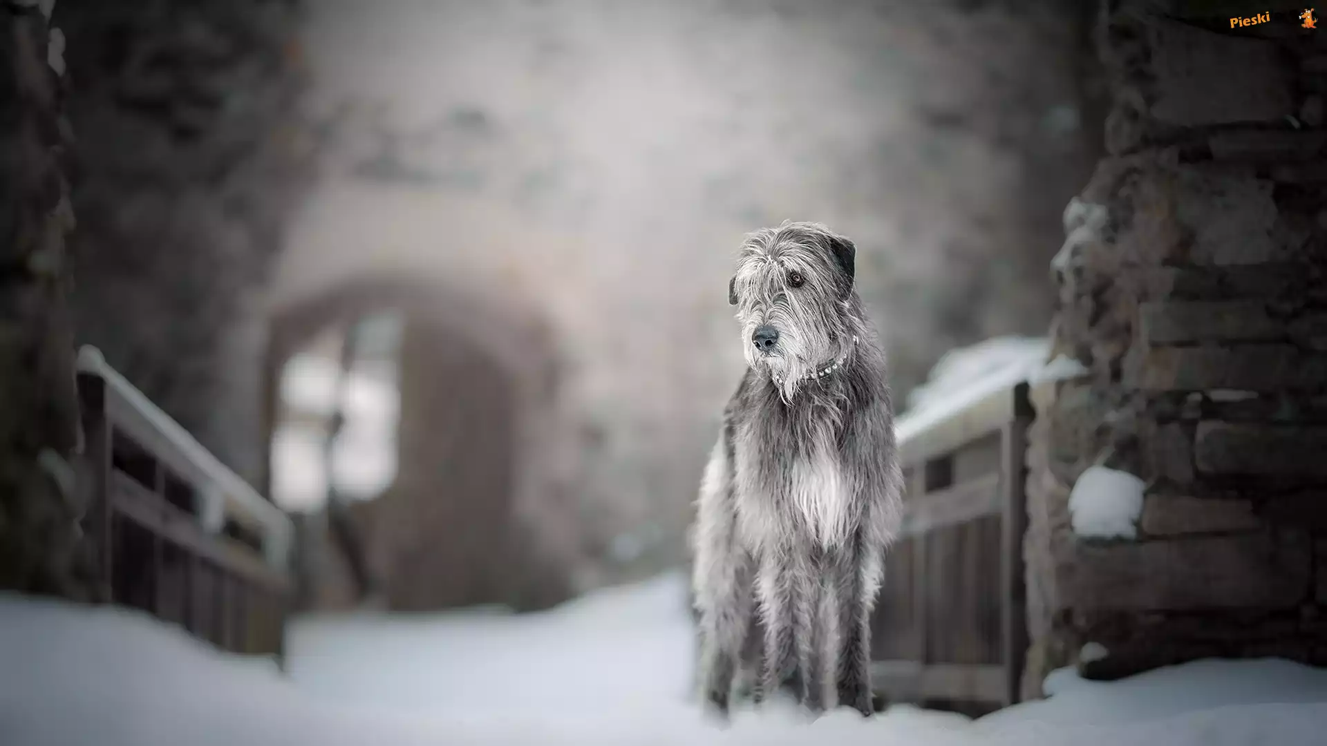 Rozmyte, Wilczarz irlandzki, Pies, Śnieg, Tło, Pieski