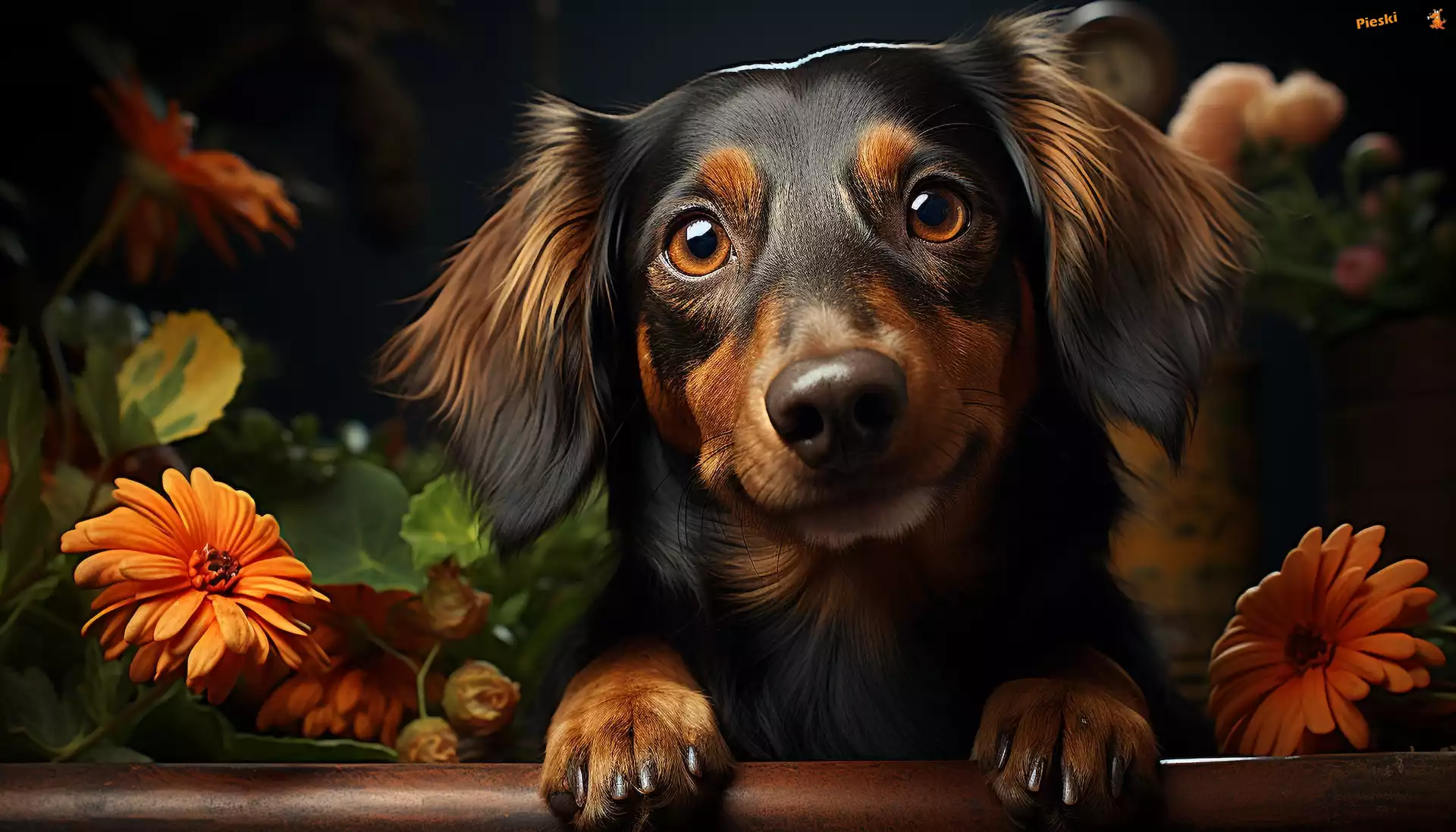 Kwiaty, Jamnik, Pies, Szczeniak, Pieski