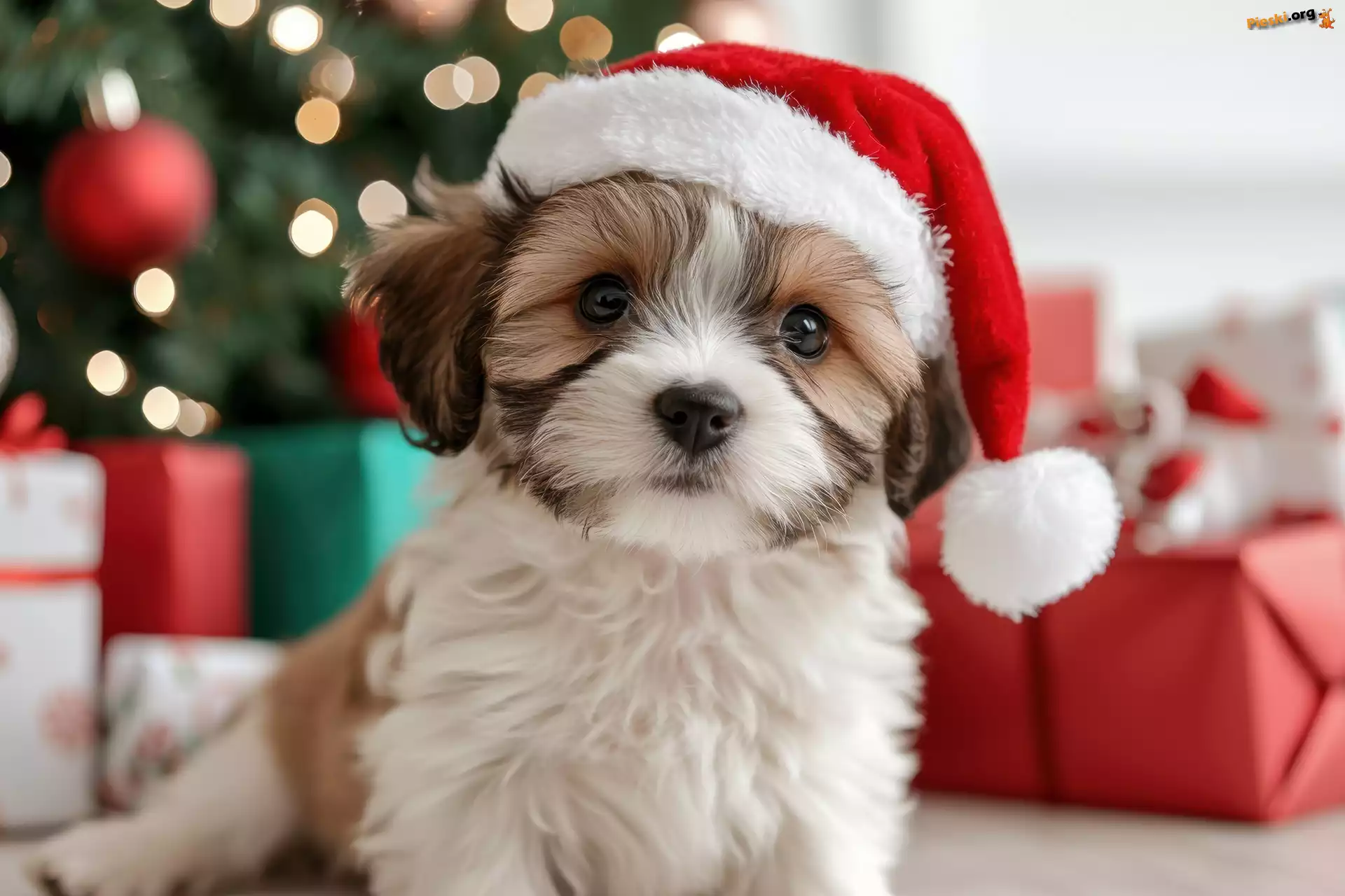 Mikołaja, Czapka, Pies, Szczeniak, Pieski