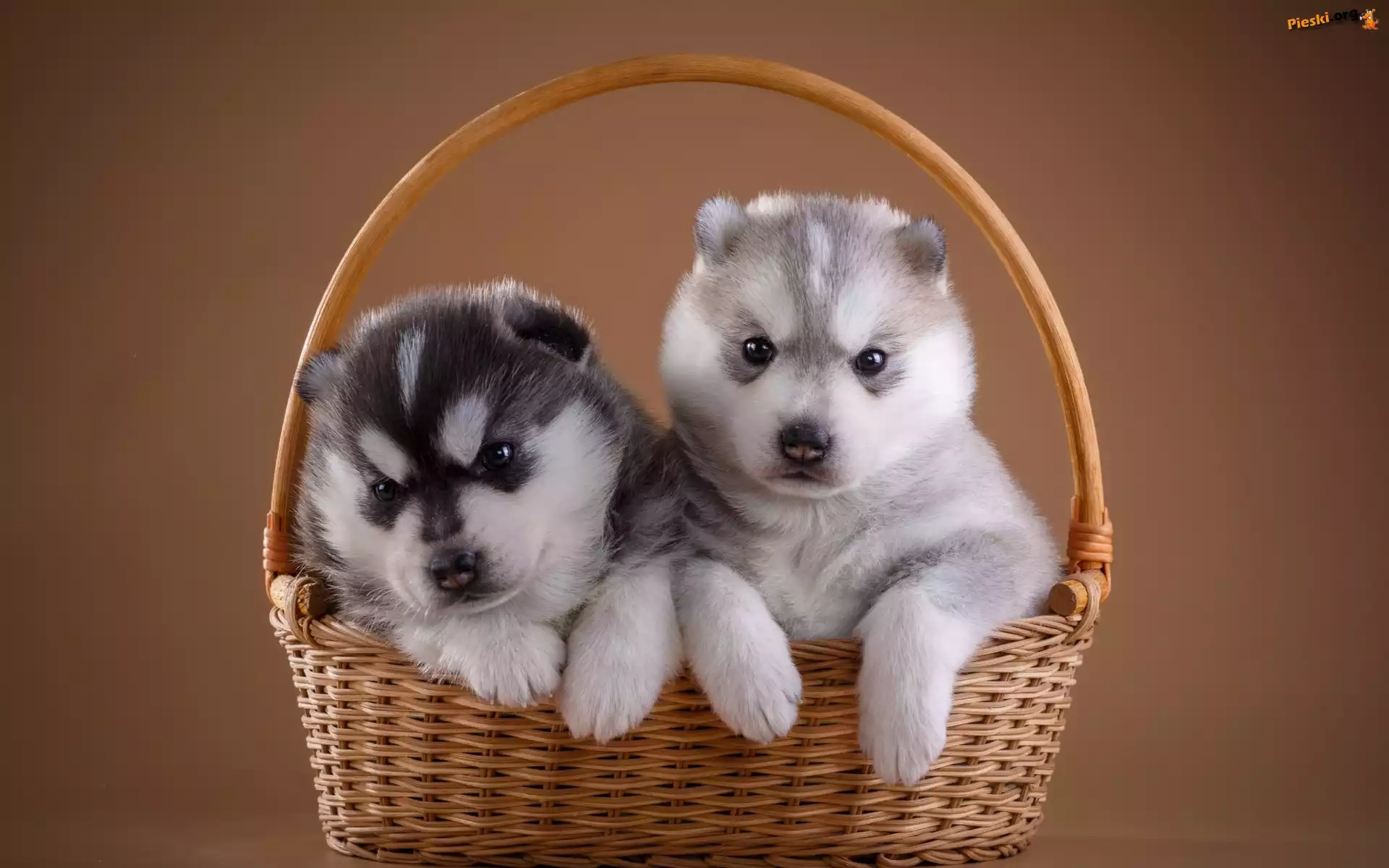 Szczeniaki, Siberian husky, Psy, Koszyk, Słodkie, Pieski