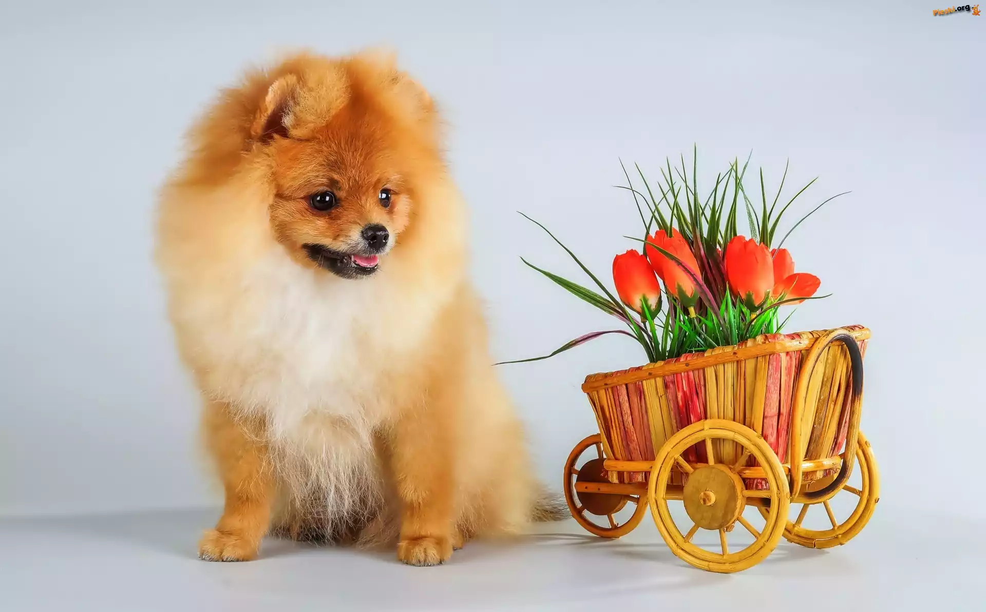 Szpic, Tulipany, Wózek, Pieski