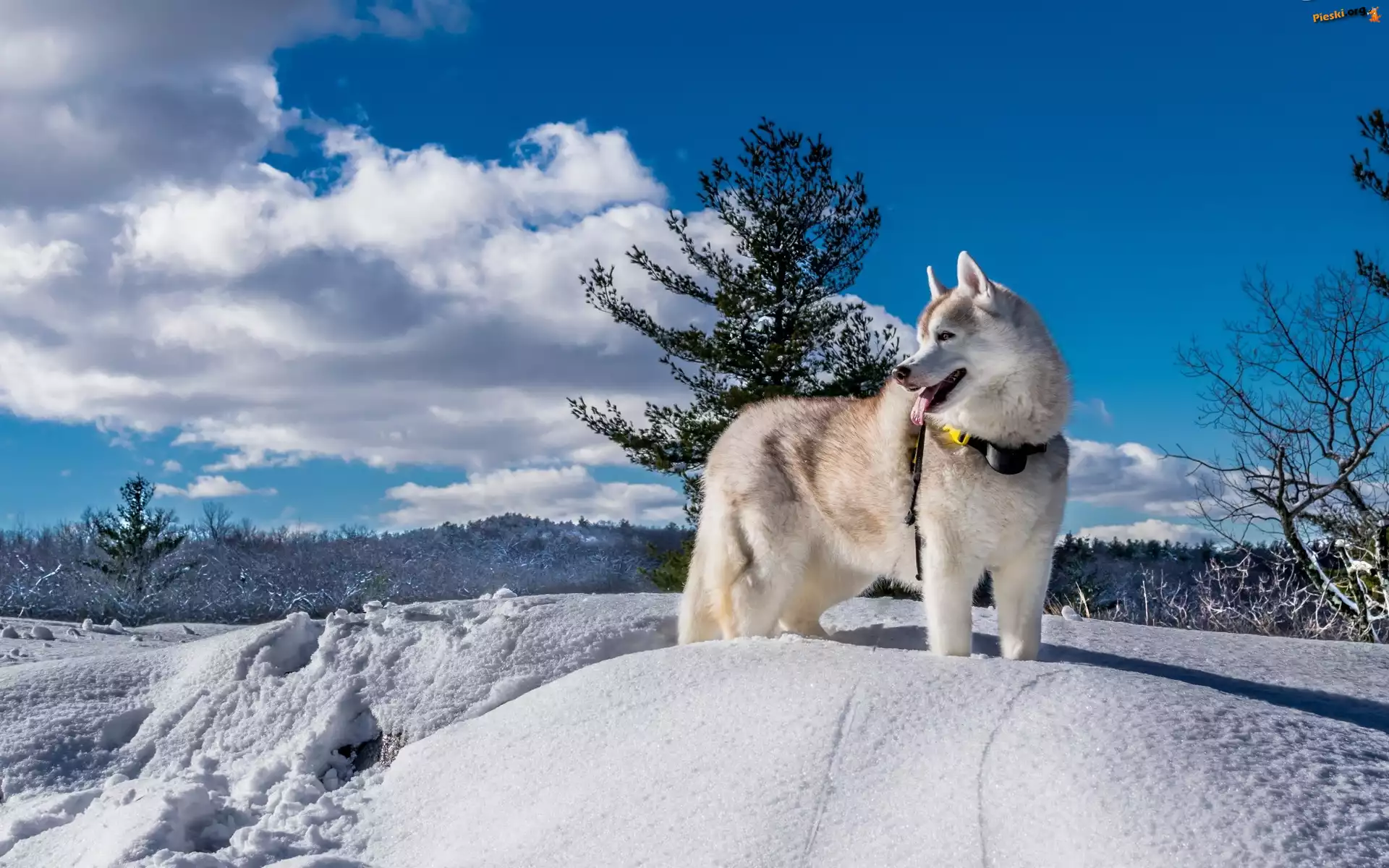 Zima, Siberian Husky, Pies, Krajobraz
